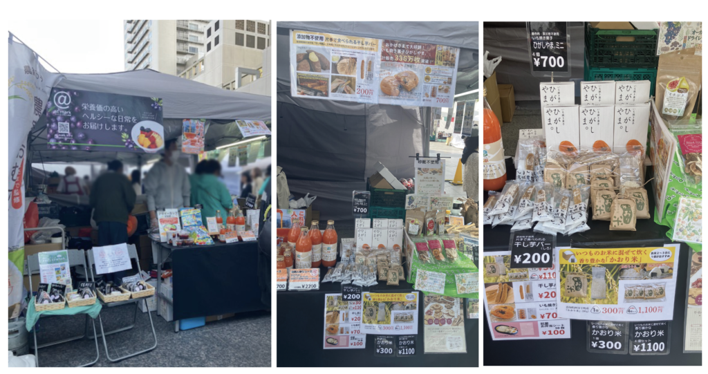 弊社はNPO法人農産物加工協会様のブースにて、お菓子やかおり米、お弁当シートを販売させていただきました。