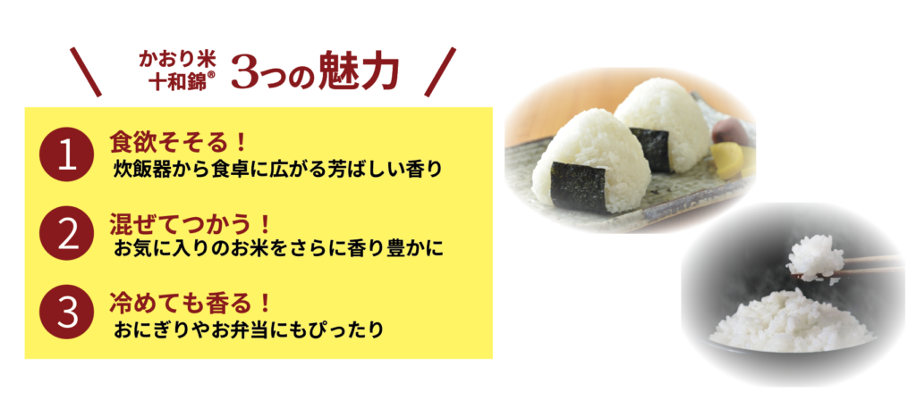 いつものお米に混ぜてご飯を炊くと、より豊かな香りが楽しめる高知県四万十産の「かおり米」。